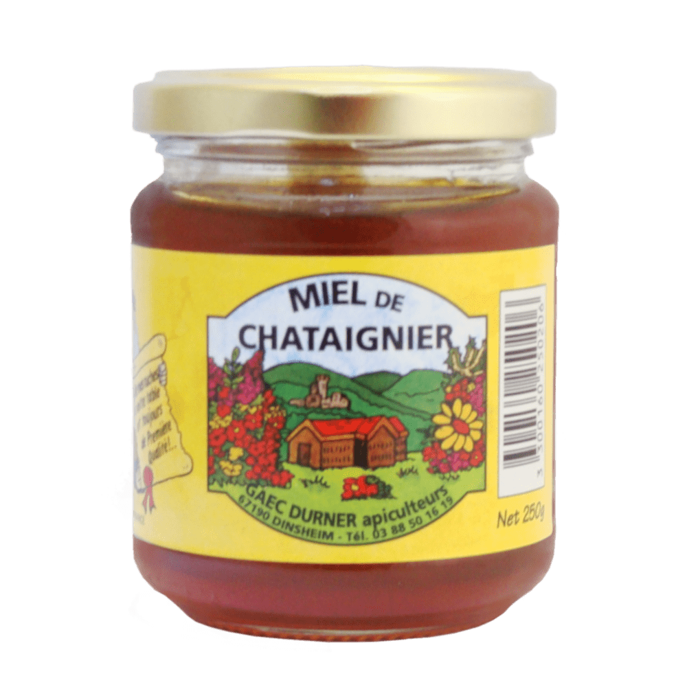 Ce miel récolté par nos abeilles autour du piémont des Vosges dans le Bas-Rhin. Sa couleur : variable, ambrée. Photo non contractuel